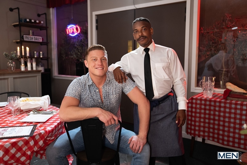 Men says: Sexy ebony muscle dude Adrian Hart’s big black dick raw fucking Logan Aarons’s bare hole at Men.